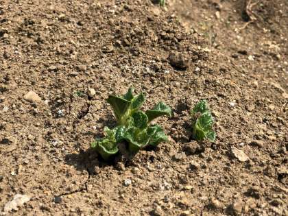 菜の花が綺麗に咲いていました。菜の花って料理に使ったら、とっても美味しい食材ですよね。パスタに入れたり、おひたしにしたり、天ぷらにしたりしても・・・いいですね。去年の四月、理科で「花のつくり」を学習しました。菜の花や桜やオオイヌノフグリの花を、ピンセットを使って解体したり、ルーペで詳しく観察したりしましたね。6年生ではレベルアップして、「植物が成長していくのは何で?」の疑問に立ち向かっていきます。その時に活躍するジャガイモちゃんも芽を出していました※このジャガイモは食べられません。情勢としては、不要不急の外出は自粛するように言われていますが、日々の健康維持のためにはお散歩も重要だとも言われています。三密を避け、春探し(先生は日向ぼっこだけでもします。)をすることも楽しいですね!