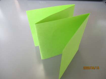 (1)はじめに紙を半分に折り、その紙をさらに半分におります。