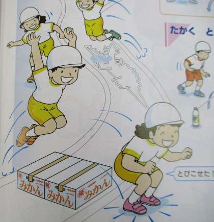 たいいく しゃがんだまま、じゃんぷしてみましょう。ものにぶつから