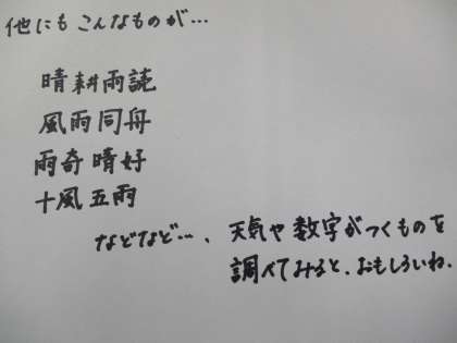 みなさんも天気の漢字がつく四字熟語を調べてみてください。