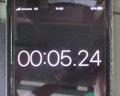 教室では、ストップウォッチで1秒未満の数字を2回出して、その4つの数字でやりました。下の写真2枚を例にすれば、(6、5)(2、4)の4つの数字となります。さて、できるかな?