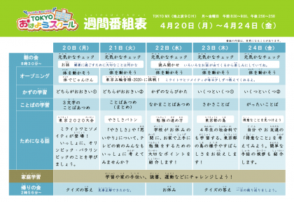 臨時休校が続く中、子どもたちが毎日の生活のリズムを整え、生活や学習の習慣付けを支援することをねらいとしています。