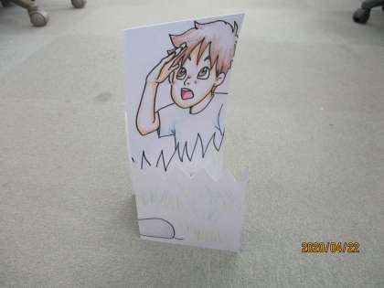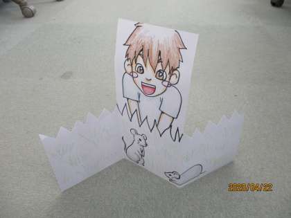 例えば、忍者がどろんと消える、〜ライダーに変身する、たまごから生まれる…なんていうイメージでつくると楽しいです!学校が始まったら、ぜひ見せてくださいね!