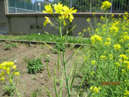 校庭のアブラナやカラスノエンドウにみができていました。みの中には何があるのかな?