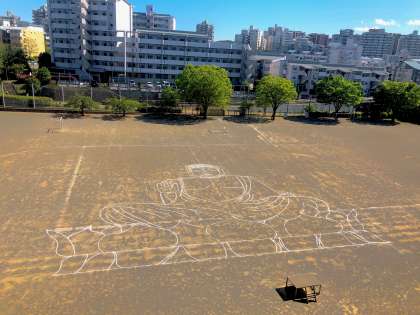 今日のお昼、「大仏造立の詔」が心の中で発令されました。なので、6年担任3人で校庭にものすごく強い願いを込めて大仏を建立しました。大きさは奈良の大仏のそのままです(さすがに2Dですが)。さて、なぜ先生たちが今、「大仏を建立しよう!」と思ったのか。それがわかる人は歴史通の人ですね!ぜひ「奈良の大仏 なぜ建てた」で調べてみてね!