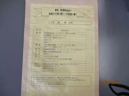 今日は今週1週間分のかだいをわたしました。明日から時間割通りにべんきょうしましょう。1時間目は8時30分からなので、早ね早おきもがんばってくださいね。