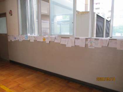 だいさくせん」のさくひんが もう ろうかに かざっています。