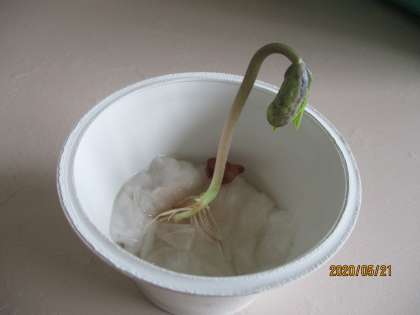 さて、先週発芽したインゲンマメはその後どうなりましたか。根やくきや葉が出てきましたか。