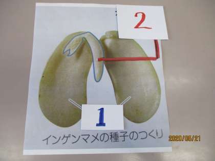 ここで、問題です。インゲンマメのたねのどの部分が、根やくきや葉になるでしょう。