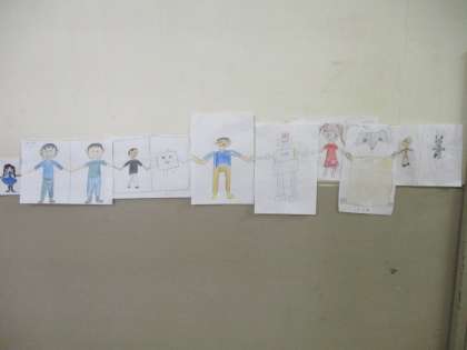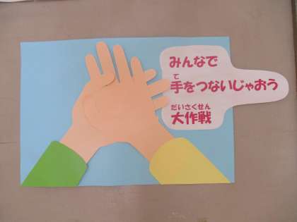 ★写真は図工「みんなで手をつないじゃおう大作戦」の作品です。
