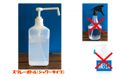 新型コロナウイルスの感染予防のために、せっけんによる手洗いとアルコールによる手指消毒を強化していきたいと思います。そこで困っているのが、スプレー容器です。アルコール液はあるのですが、それを入れる容器が不足しています。