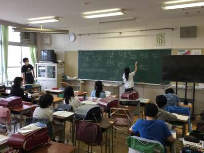 算数の授業では、小数のかけ算の問題に一生懸命に取り組んでいて素晴らしかったです。