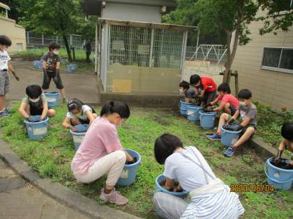 6月4日(木) 5年生の皆さんへ 公開日 2020/06/04 更新日 2020/06/04 第5学年 今日は、上柚木米の土づくり2回目でした。 昨日の土の入ったバケツに水を入れて、肥料も入れて底の方からこねました。 「気持ちがいいー」といつまでもやりたそうな人もいれば、苦手そうな人もいましたが、皆がんばりましたね。 土の様子を見ながら、今後、苗を植えていきます。 いいね(0)