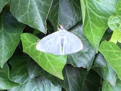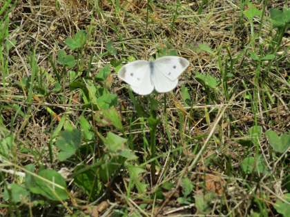 その近く、しいく小屋の横の木にむらがる、まるでモンシロチョウのような白い虫。モンシロチョウは花にはとんでいきますが、木にむらがるのは聞いたことがありません。調べてみたところ、「キアシドクガ」というガだそうです。どちらがモンシロチョウだと思いますか?