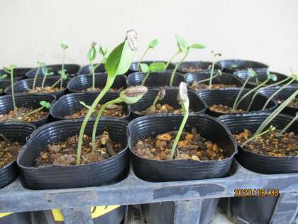 たねのからをつけたままめを出しているヒマワリのたねもありましたね。木曜日の理科の時間にかんさつをします。これからどのくらい育つのか楽しみですね。
