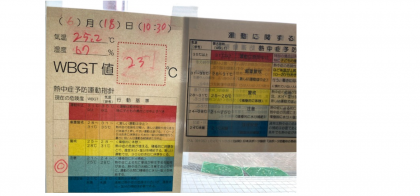 さて、6月16日から保健給食委員会が始まりました。今年は初めて「熱中症記録係」を作りました。中休みに気温や湿度、そしてWBGT(暑さ指数)を確認して昇降口に掲示しています。外に行くときには、確認してみてください。