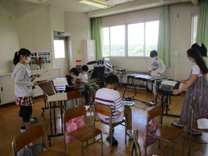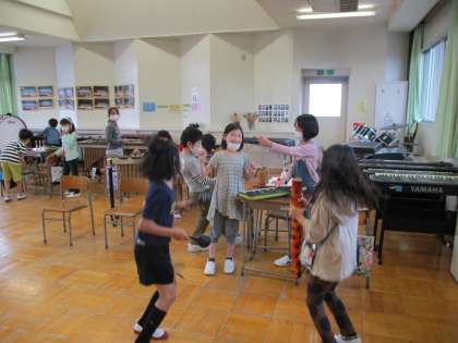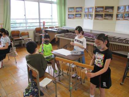 どちらも自分のイメージや、パートの役割にふさわしい「音色」を感じ考えながら音楽を創る学習です。次回は繰り返し方を工夫して、自分たちだけの音楽を創り上げていきます。お楽しみに!