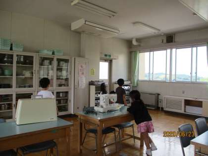 こんしゅうは、げつようびに 1くみが、かようびに 2くみが、りかしつと かていかしつの がっこうたんけんを しました。りかしつには、じっけんで つかうものが たくさんありました。「どうやって、つかうの?」と きょうみしんしんでした。かていかしつでは、おちゃわんや おなべなど うちに あるものが あって、「なんで がっこうに あるの?」とふしぎそうでした。はやく りかしつや かていかしつで べんきょうしてみたいですね。