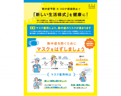 そこで、1、外での活動(登下校・外遊び・体育等)では人との距離を保ち、大声を出さないように気を付けてマスクを外す 2、のどが渇いていなくても、運動の「前」「中」「後」に水分をとる 3、外に出るときは帽子をかぶる 4、無理をしないで休憩をとる