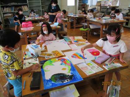 2くみは図工がありました。絵のぐを使ってカラフルな作品にしあがりました。1組は金曜日が図工ですね。お楽しみに!