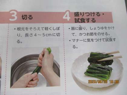 お茶の入れ方についての課題の見守りありがとうございました。今週は、「ゆで野菜」です。前回よりも難しいと思いますので、安全面での見守りをお願いします。お手伝いの課題でも構いませんのでよろしくお願いします。