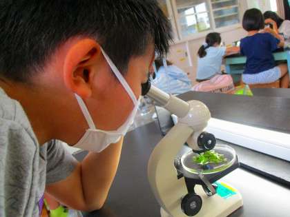 7月8日(水) 5年生のみなさんへ 公開日 2020/07/08 更新日 2020/07/08 第5学年 今日はメダカの卵を観察しました。 顕微鏡を使って卵の中までじっくりと観察することができました。 もうすぐ稚魚が出てきそうな卵や、動いている卵もありましたね。 卵からどんな姿から出てくるか楽しみですね!! いいね(0)