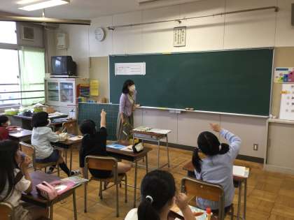 7月9日(木) 専科の先生より 公開日 2020/07/09 更新日 2020/07/09 専科 4年生の授業では、「垂直」「平行」の学習をしています。算数教室では、教室の中から「平行」になっている2本の直線を探して、テープを貼りました。 黒板の上と下の枠や、ロッカー、手すり、床の木目など、たくさんの平行な直線を発見しました。幅が広かったり、斜めに貼っても、「平行」な関係にあることが確認できた学習でした。 いいね(0)