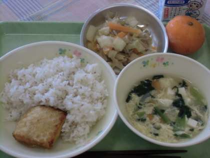 今日のごはんは、米、もち米、むぎ、きび、ごまが入った五穀ごはんでした。子どもたちには、しっかり噛んで食べようね!と声をかけました。