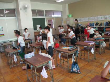 9月10日(木) 2年生のみなさんへ 公開日 2020/09/10 更新日 2020/09/10 第2学年 今日もあつい一日でしたね。 1組はきのう、2組は今日、田所先生と外国語のべんきょうをしました。 歌を歌ったり、絵を見てかいわをしたり、DVDを見ておどったり、楽しい1時間でした。 明日は、いよいよえんそくです。天気がしんぱいですが、しおりを見て、じゅんびをしてください。リュックでとうこう、おべんとう、水とうをわすれずにもってきてくださいね。 明日がすずしくなりますように。 いいね(0)