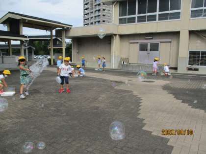 きょうは、1じかんめの せいかつの じかんに、しゃぼんだまあそびを しました。
