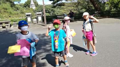 今日は2年生の遠足です。多摩動物公園でグループ活動をしています。