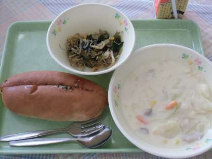 今日は、ガーリックトーストでした。上柚木小では、ガーリックトーストはどの学年でも良く食べてくれる人気メニューです。クリームシチューは、小麦粉、バター、油を焦げないようによく炒めながらルーを作りました。牛乳でのばして、ホワイトソースにしました。子どもたちに、今日は牛乳がなくてジュースの日だけど、シチューにはたっぷり牛乳が入っているんだよ!残さずしっかり食べましょう!と声をかけました。シチューに牛乳が入っていることにびっくりしている子もいました。