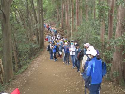 行きはグループ行動で、ペース配分を考えながら安全に山頂まで登りました。お弁当を食べた後は、すべらないように気を付けながら、稲荷山コースをゆっくり下りてきました。