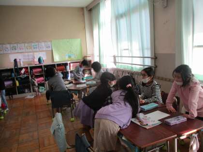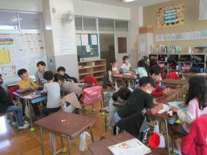 1年生が楽しんでくれるようなアイディアやくふうをグループごごとにかんがえています。どんなおみせになるか、楽しみです。