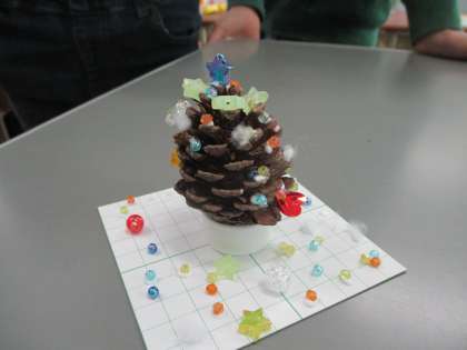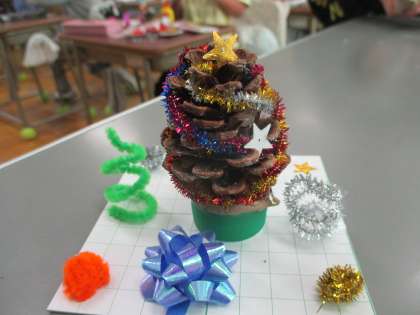 今しゅうは、生活かでまつぼっくりをつかってクリスマスツリーを作ります。