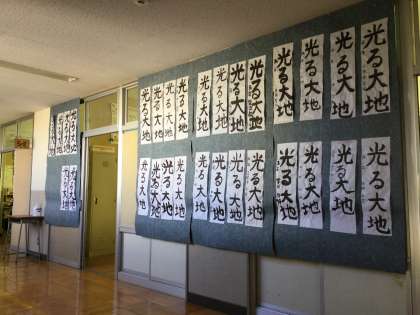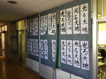 1月19日(火)「校内 書き初め展」 5年生の作品 公開日 2021/01/19 更新日 2021/01/19 ゆうゆう記 本日から26日まで校内書き初め展を実施しています。一人一人が心を込めて書いた作品が展示されました。大変見ごたえがあります。今年度は児童のみの鑑賞になります。ご家庭に作品を持ち帰りましたら、ぜひ飾ってご鑑賞ください。 5年生の作品です。 いいね(0)