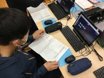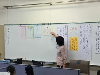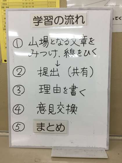 学習支援ツールを使った国語の学習は今日で3時間目です。子供たちはツールの操作に慣れ、思い思いに自分の考えを出せるようになりました。またなかなか考えがまとまらない、定まらないときには友達が考えたことを閲覧することができ、自分の考えを確かなものにすることができました。