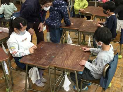 1月26日(火)「1年生 生活『お正月あそび』」 公開日 2021/01/26 更新日 2021/01/26 ゆうゆう記 おはじきで遊ぶの初めて!!だそうです。いろいろな遊びにふれ合うことも大切な学びです。 いいね(0)