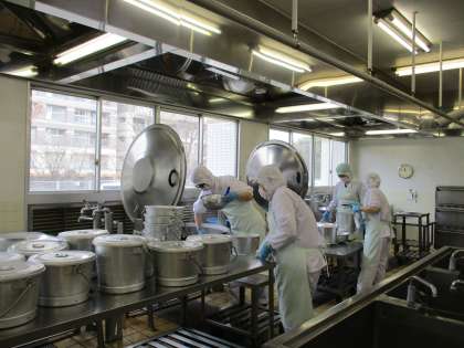 今日は、とても貴重な大量の牛肉を扱うということで、給食室でもいつも以上に緊張感をもって作業にあたりました。おいしく調理して、子どもたちのもとへ届けられるように、しっかりと打ち合わせやシミュレーションをして作業しました。その甲斐あって、教室では子どもたちが「おいしい!」と良い笑顔をたくさん見せてくれました。