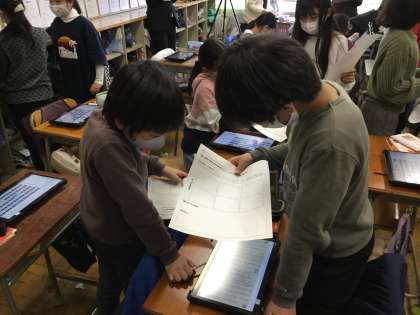本校では昨年度から、ユニバーサルデザインの考えて取り入れた授業づくりを研究していますので、その一環として、学習支援ツール『ロイロノート』を活用することを盛り込みました。学習支援ツールを使うことで自分の考えを明確にし、自分の違う考えを共有することができました。