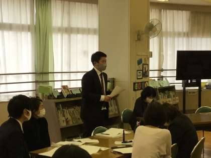今日の授業を見て、2つの視点に沿って、先生方が互いに意見を言い合い、深めました。講師の先生から、今日の授業について、教材の分析、解釈の仕方などを改めてご教授いただきました。