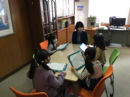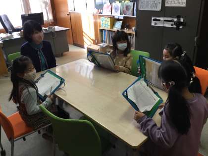 1年生は国語の授業で学校のことを調べたり、インタビューしたりして学校のことを友達に伝える学習をしています。今日は、校長先生、副校長先生、栄養士の先生などにインタビューしてきました。教室でたくさん練習してきた通り、しっかりと質問することができました。分かったことを友達同士でどのように伝え合うことができるか楽しみです。