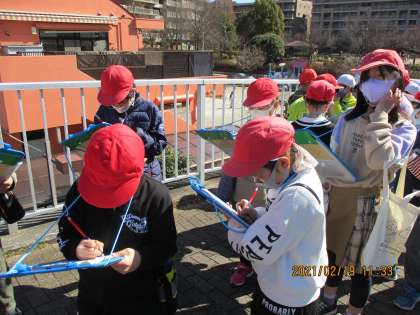 総合の「安全な町づくりを考えよう」では、みんなが住みやすい町はどんな町なのかを考え、安全・安心な町について調べています。18日と19日の二日間、学校の周りを歩き、安全な場所や危ない場所を調べました。「ここには防犯カメラがあるね。」「歩道橋があると道路を渡らなくていいから安全だね。」「ピーポ君の家があったよ。」などと言いながら、真剣に地図に記録をしていました。二日間では、調べられないところもたくさんあったので、放課後やお休みの日に見つけたら教えてくださいね。みんなで協力して安全マップを完成させましょう。