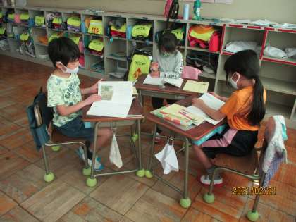 みんな、きょうかしょを よく よみ、きもちをかきました。