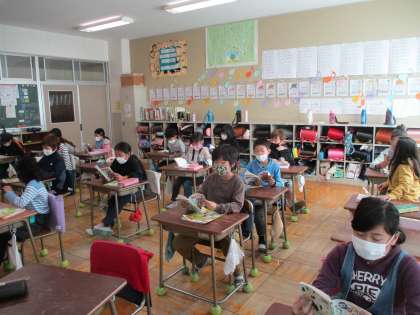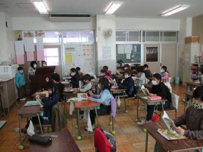 旅立ちの日に、ありがとうの花、とそつぎょうする6年生にむけての歌も川島先生と歌いました。来年からは、音楽室での学しゅうになります。楽しみですね。