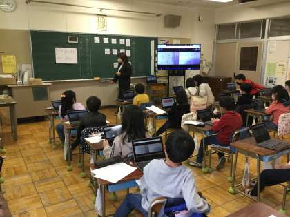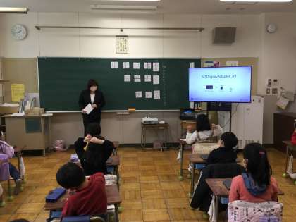 2年生では漢字が組み合わせてできていることを学んでいます。例えば、組は糸と合、聞は門と耳など、様々な漢字が組み合わせによってできています。今まで学習してきた漢字を思い出し、様々な組み合わせの漢字を探しました。そして、学習端末と学習支援コンテンツを使って、全員で共有しました。3年生の学習である、“へん”と“つくり”の学習につなげていきます。