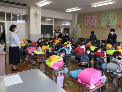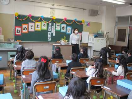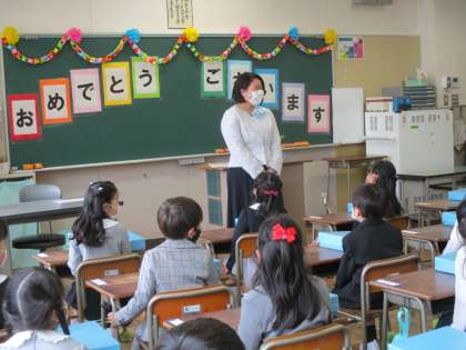 学級指導では、一人一人の名前が呼ばれ、子どもたちは元気いっぱい返事をしていました。