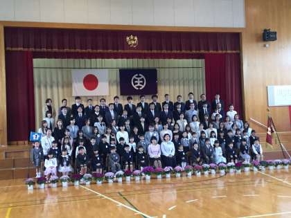 写真は新入生、保護者の方々全員での写真撮影の時と、担任からのお話の様子です。