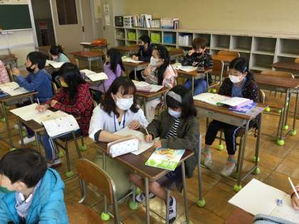 4月14日(水) 3年生 算数 その2 公開日 2021/04/14 更新日 2021/04/14 ゆうゆう記 3年生から算数の時間は、3つのグループに分かれて学習します。いつもとは違う友達や先生と学習することになります。今日の学習では、「九九の表とかけ算」という単元で、かけ算の決まりを使って、□の数を求めます。2年生の時に学習したかけ算九九。みんなよく覚えていました。これで「わり算」もばっちり!できるようになるかな? いいね(0)