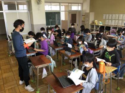 4月28日(水) 5年生 道徳 公開日 2021/04/28 更新日 2021/04/28 ゆうゆう記 5年生では今日の道徳の授業では、子供たち一人一人の考えをすぐに共有できるようにクロームブックを活用しました。道徳には正解はありません。みんな一人一人が納得できる答え(納得解)が大切です。新しくなった学習指導要領では、考える道徳、議論する道徳と言われています。子供たちが考えをもち、互いに共有することがクロームブックを使うことで容易になりました。 いいね(0)